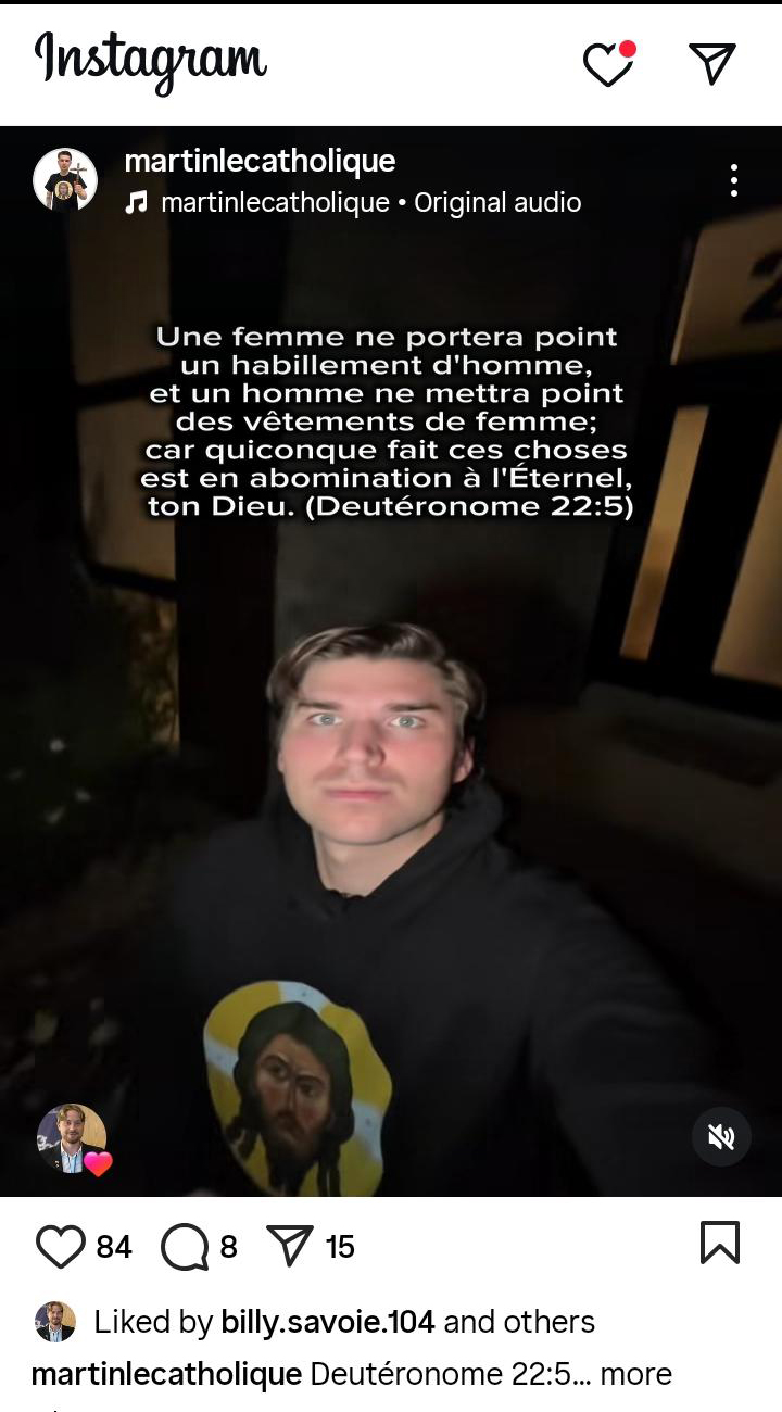 Depuis le 20 septembre, Billy Savoie est totalement en roue libre. Il a commencé une formule de micros-trottoirs sur le campus de l’UQAC, en s’inspirant du modèle de l’influenceur Martin le catholique, lequel a d’ailleurs également collaboré à certaines de ses publications sur Instagram.